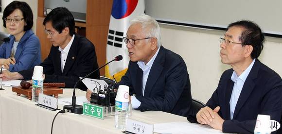 김한길 민주당 대표가 24일 오전 서울 성북구 석관동 주민자치센터에서 열린 현장 최고위원회의에서 모두발언을 하고 있다.