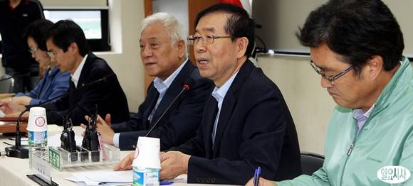 박원순 서울시장이 24일 오전 서울 성북구 석관동 주민자치센터에서 열린 민주당 현장 최고위원회의에서 모두발언을 하고 있다.
