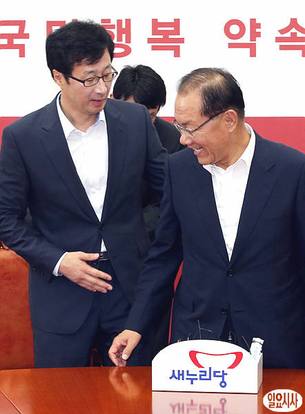 24일 오전, 서울 국회 새누리당 대표실에서 천호선 정의당 신임 대표(사진 왼쪽)가 황우여 대표를 예방하고 있다.