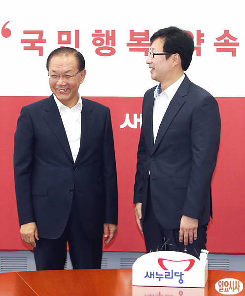 24일 오전, 서울 국회 새누리당 대표실에서 천호선 정의당 대표가 황우여 대표(사진 오른쪽)를 예방하고 있다.