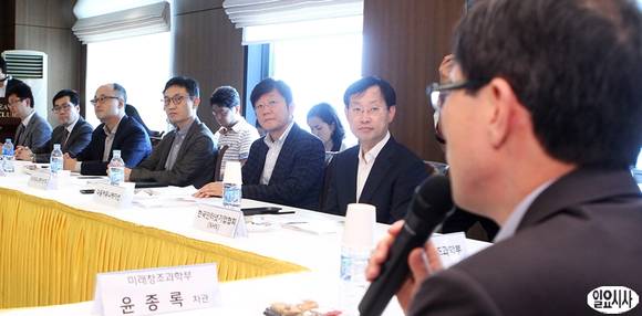 24일 오후 서울 중구 프레스센터에서 열린 '제1차 인터넷 상생발전 협력회의'에서 참석자들이 윤종록 미래창조과학부 제2차관의 인사말을 듣고 있다.