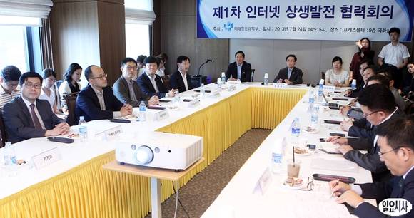 윤종록 미래창조과학부 제2차관을 비롯한 참석자들이 24일 오후 서울 중구 프레스센터에서 열린 '제1차 인터넷 상생발전 협력회의'에서 프리젠테이션을 보고 있다.