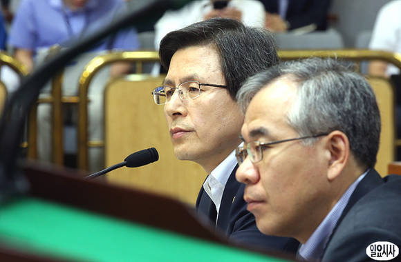 황교안 법무부 장관이 24일 국회에서 열린 국가정보원 댓글 의혹 사건 등의 진상규명을 위한 국정조사특위에 증인으로 출석, 여야 위원들의 질문에 답하고 있다.
