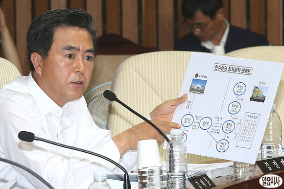 새누리당 김태흠 의원이 24일 국회에서 열린 국가정보원 댓글 의혹 사건 등의 진상규명을 위한 국정조사특위에서 자료를 들어보이며 질의를 하고 있다.