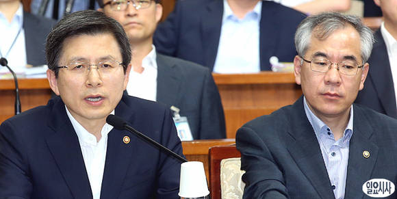 황교안 법무부 장관(사진 왼쪽)이 24일 국회에서 열린 국가정보원 댓글 의혹 사건 등의 진상규명을 위한 국정조사특위에 증인으로 출석, 여야 위원들의 질문에 답하고 있다.