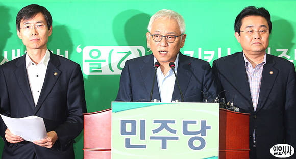 24일 민주당 김한길 대표(사진 가운데)와 최고위원들이 국회 당 대표실에서 국정원 댓글 의혹 사건 진상규명을 위한 국조특위에 관련해 긴급 기자회견을 갖고 있다.