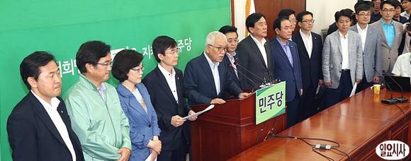 24일 오후, 민주당 김한길 대표와 최고위원들이 국정원 댓글 의혹 사건 진상규명을 위한 국조특위에 관련 긴급 기자회견을 갖고 있다.