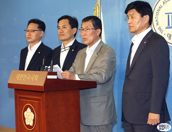 황진하 새누리당 간사 등 2007년 남북정상회담 대화록 새누리당 열람위원들이 24일 오후 국회 정론관에서 기자회견을 갖고 검찰에 수사의뢰할 것을 강력히 촉구하고 있다.