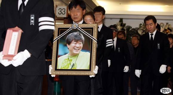 25일 오전 서울 풍납동 서울아산병원에서 故 김종학 PD의 발인식이 열리고 있는 가운데 고인의 영정이 영결식장으로 향하고 있다.