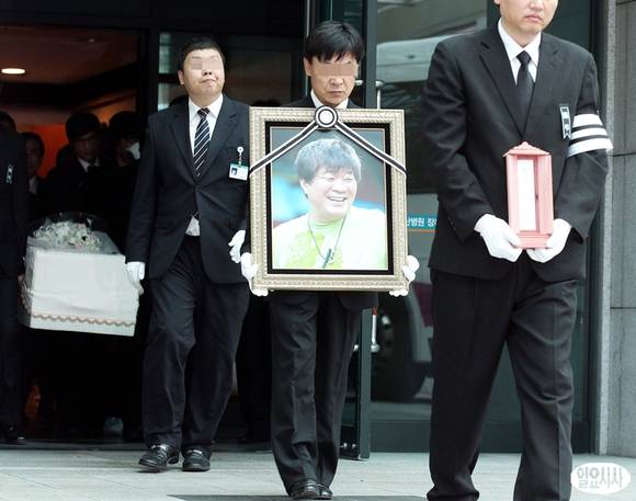 25일 오전 서울 풍납동 서울아산병원에서 故 김종학 PD의 발인식이 열리고 있는 가운데 운구 행렬이 장례식장을 빠져나오고 있다.