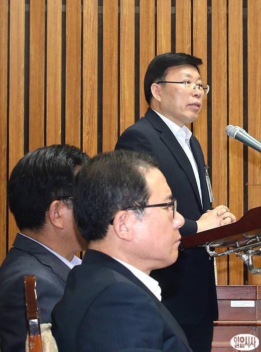 25일 오후 서울 여의도 국회에서 열린 국가정보원 댓글 의혹 사건 등의 진상규명을 위한 국정조사특별위원회 전체회의가 열리고 있는 가운데, 증인으로 출석한 최현락 경찰청 수사국장(사진 오른쪽)이 업무보고를 하고 있다.