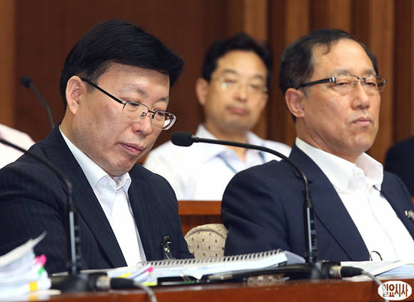 25일 오후 서울 여의도 국회에서 열린 국가정보원 댓글 의혹 사건 등의 진상규명을 위한 국정조사특별위원회 전체회의가 열리고 있는 가운데, 증인으로 출석한 최현락 경찰청 수사국장(사진)이 자료를 바라보고 있다.