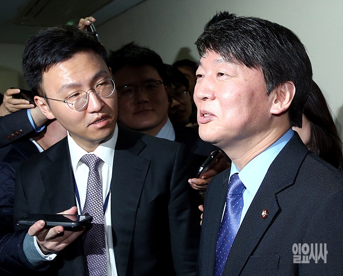 19일, 안철수 새정치연합 중앙운영위원장이 여의도 사무실에서 가진 공동위원장회의 직후 새정치연합 정강정책분과의 논란과 보도와 관련, 취재진의 질문에 답변하고 있다.