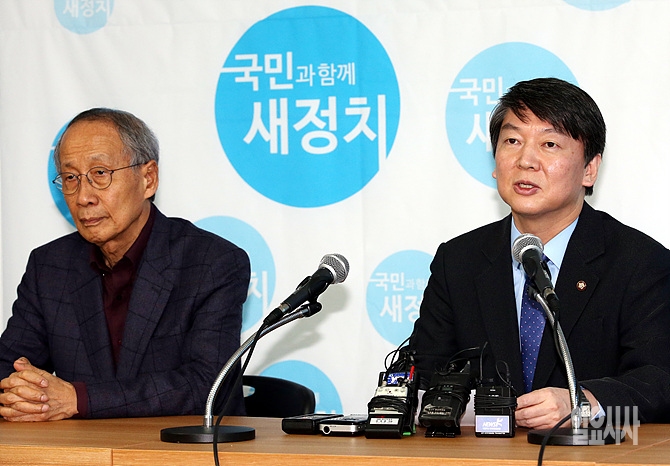 19일, 안철수 새정치연합 중앙운영위원장이 여의도 사무실에서 가진 공동위원장회의 직후 새정치연합 정강정책분과의 논란과 관련한 질문에 답변하고 있다.