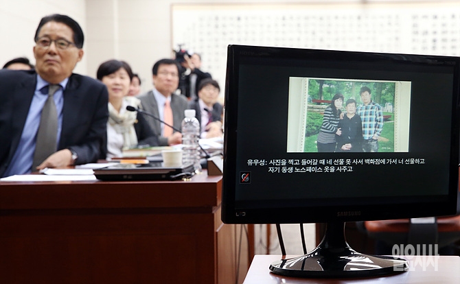 19일 오후, 야당 단독으로 국회 법제사법위원회 전체회의 도중 서울시 공무원 간첩증거조작사건과 관련해 녹취록 등 시청각 자료를 보고 있다.