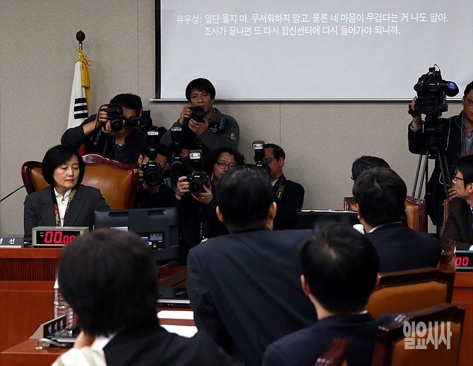 19일 오후, 야당 단독으로 열린 국회 법제사법위원회 전체회의에서 서울시 공무원 간첩증거조작사건 대책 논의 도중 녹취록 시연 화면에 취재진이 몰려 있다.