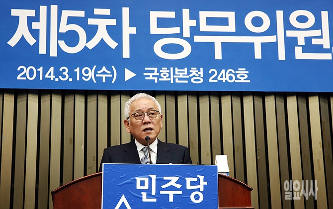 19일 오전, 민주당 김한길 대표가 서울 여의도 국회에서 열린 당무위원회의 직전, 모두발언을 하고 있다.