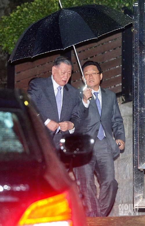 고(故) 정주영 현대그룹 명예회장의 13주기를 하루 앞둔 20일 정몽구 현대기아자동차그룹 회장이 서울 청운동에 위치한 고 정 명예회장의 생전 자택으로 들어서고 있다.