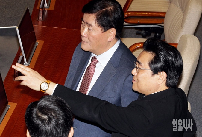 [포토] 본회의장에서 만난 최경환-전병헌