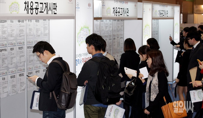 25일 서울 삼성동 코엑스에서 열린 2014 현대ㆍ기아자동차 협력사 채용박람회에서 구직자들이 채용공고게시판을 살펴보고 있다.