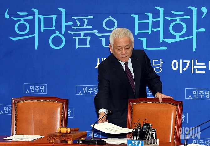 민주당 김한길 대표가 25일 오전, 서울 여의도 국회에서 마지막 최고위원회의를 위해 입장하고 있다.