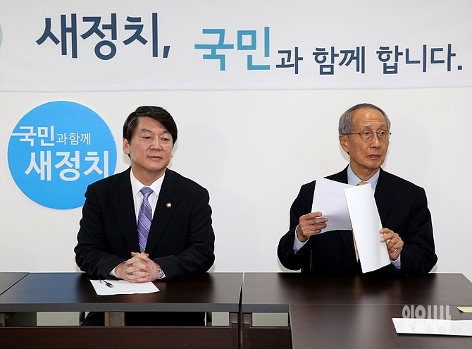 안철수 새정치연합 중앙운영위원장과 윤여준 의장이 25일 오후, 서울 여의도 새정치연합 회의실에서 마지막으로 중앙운영위원회의를 갖고 있다.