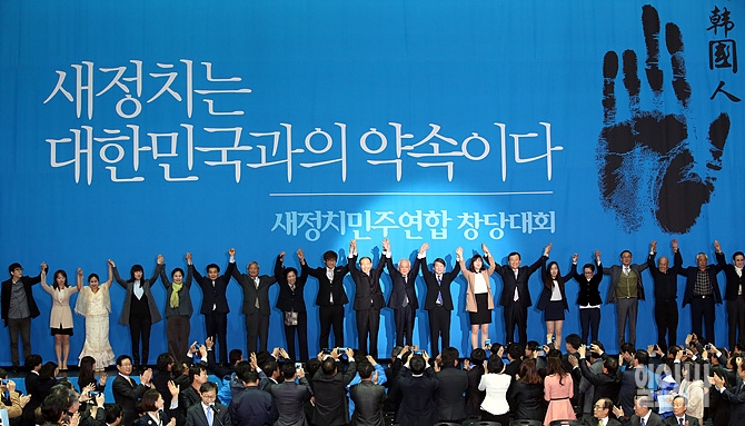 26일 오후, 새정치민주연합 김한길·안철수 공동대표 등이 참석한 가운데 서울 송파구 올림픽홀에서 새정치민주연합 창당대회가 열리고 있다.