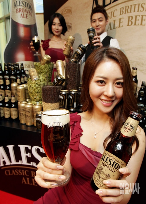 오비맥주가 26일 서울 종로구 그랑서울 나인트리 컨벤션센터에서 정통 영국 스타일의 프리미엄 에일맥주 '에일스톤(ALESTON)'을 선보이고 있다.