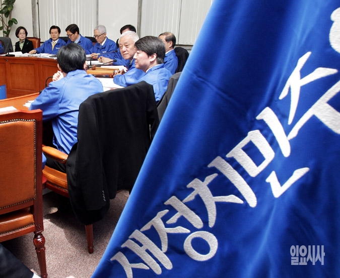 27일 서울 여의도 국회에서 새정치민주연합 김한길, 안철수 공동대표를 비롯한 최고위원들이 참석한 가운데 첫 최고위원회의가 열리고 있다.