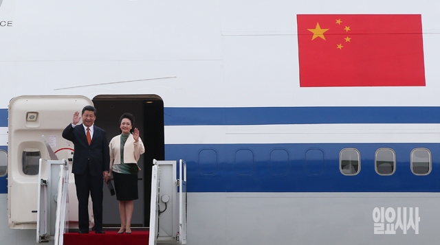 시진핑 중국 국가주석과 부인 펑리위안이 3일 경기도 성남 서울공항을 통해 입국하고 있다.