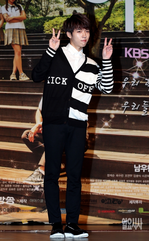 인피니트 남우현이 7일 서울 당산동 그랜드컨벤션센터에서 열린 KBS 2TV 새 금요 판타지 성장드라마 '하이스쿨:러브온'(극본 이재연, 연출 성준해) 제작발표회에서 포토타임을 갖고 있다.