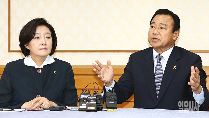 7일, 이완구 새누리당·박영선 새정치민주연합 원내대표(사진 왼쪽)가 서울 여의도 국회에서 주례회동을 갖고 있다.