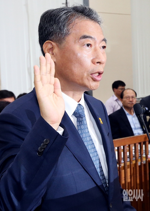 정종섭 안전행정부 장관 후보자가 8일 서울 여의도 국회 안전행정위원회에서 열린 인사청문회에서 선서를 하고 있다.