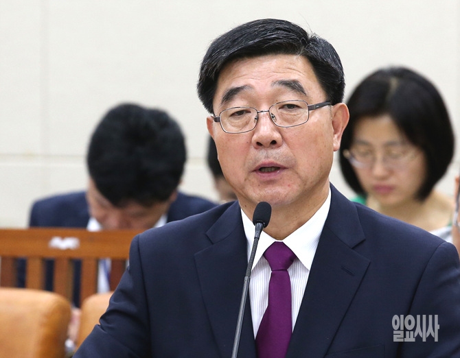 8일, 서울 여의도 국회에서 열린 이기권 고용노동부 장관 후보자 인사청문회에서 이 후보자가 의원들의 질의에 답변하고 있다.