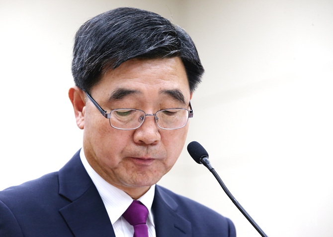 8일, 서울 여의도 국회에서 열린 이기권 고용노동부 장관 후보자 인사청문회 도중 이 후보자가 자료를 확인하고 있다.