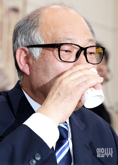 김명수 사회부총리 겸 교육부 장관 후보자가 9일 서울 여의도 국회 교육문화체육관광위원회에서 열린 인사청문회에서 물을 마시고 있다.