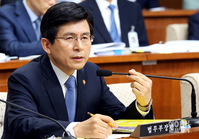 황교안 법무부 장관이 9일 서울 여의도 국회에서 열린 세월호침몰사고진상규명국정조사 특별위원회 전체회의에서 의원들의 질의에 답하고 있다.