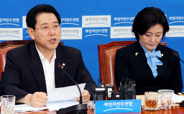 김영록 새정치민주연합 원내수석부대표가 10일 서울 여의도 국회에서 열린 정책조정회의에서 모두발언을 하고 있다.