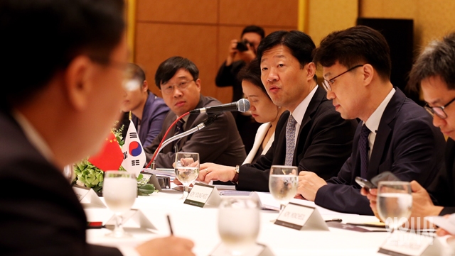 14일 서울 홍은동 그랜드힐튼호텔에서 열린 한·중 FTA 12차 협상에서 한국 측 수석대표 우태희 산업부 통상교섭실장이 발언을 하고 있다.