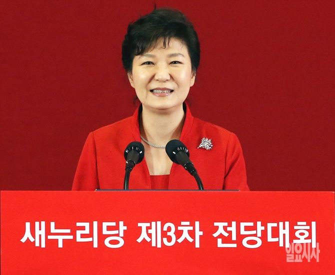 박근혜 대통령이 14일 오후, 서울 송파구 잠실실내체육관에서 열린 새누리당 7·14전당대회에 참석해 연설을 하고 있다.