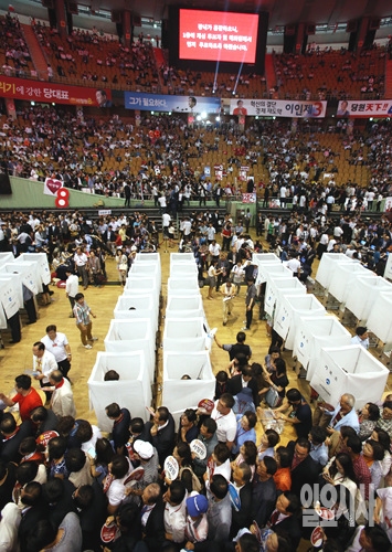 14일 오후, 서울 송파구 잠실실내체육관에서 새누리당 당 대표와 최고위원을 선출하는 7·14전당대회가 열리고 있다.