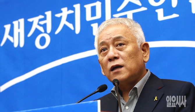 김한길 새정치민주연합 공동대표가 15일, 서울 여의도 국회 의원총회에서 모두발언하고 있다.