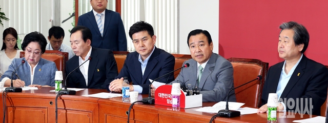 이완구 새누리당 원내대표(오른쪽에서 두번째)가 16일 서울 여의도 국회에서 열린 새누리당 최고중진연석회의에서 모두발언을 하고 있다.