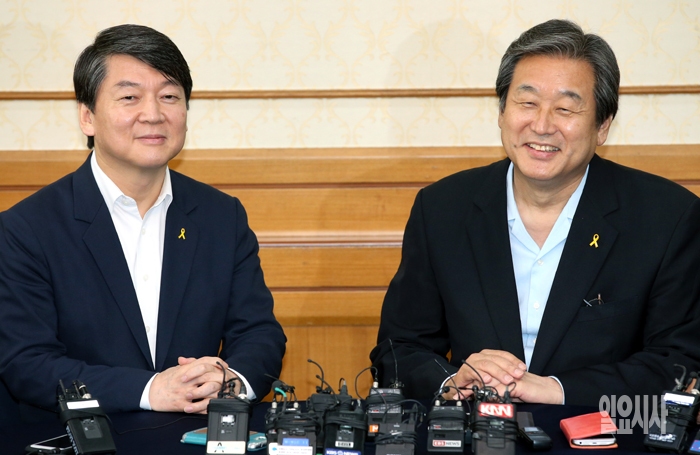 새누리당 김무성 대표와 새정치민주연합 안철수 공동대표가 16일 오후 국회에서 열린 '세월호 특별법 처리  회동'을 갖고 있다.