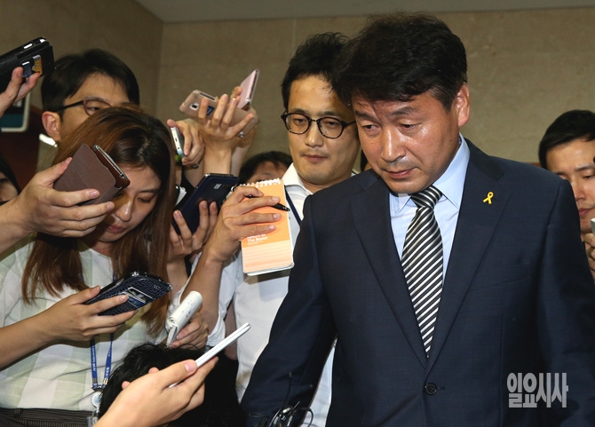 24일 오후, 서울 여의도 국회 정론관에서 기동민 7·30 새정치민주연합 동작을 후보가 후보직 사퇴 기자회견 직후 침통한 표정으로 회견장을 나서고 있다.