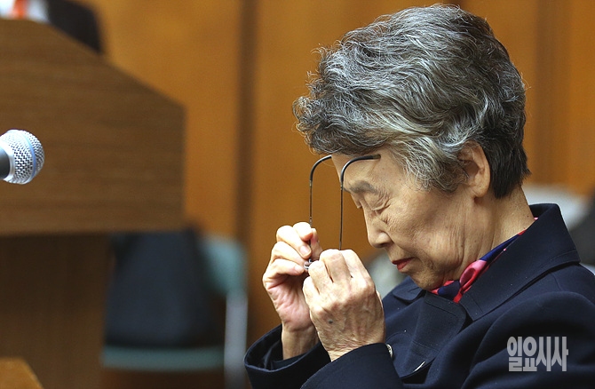 22일 오후, 서울 여의도 미래창조과학방송통신위원회 회의실에서 열린 KBS 등에 대한 국정감사 도중 증인으로 출석한 이인호 KBS 이사장이 안경을 벗고 있다.