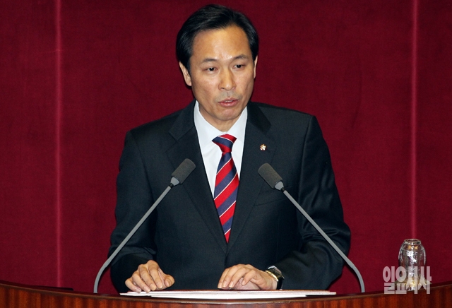 새정치민주연합 우상호 의원이 5일 서울 여의도 국회 본회의장에서 열린 교육·사회·문화 분야 대정부 질문에서 정홍원 국무총리에게 질의를 하고 있다.