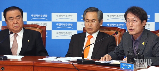 조희연 서울시교육감이 5일, 서울 여의도 국회 새정치민주연합 당대표 회의실에서 열린 전국 시도교육감협의회 회장단 간담회에서 발언하고 있다.
