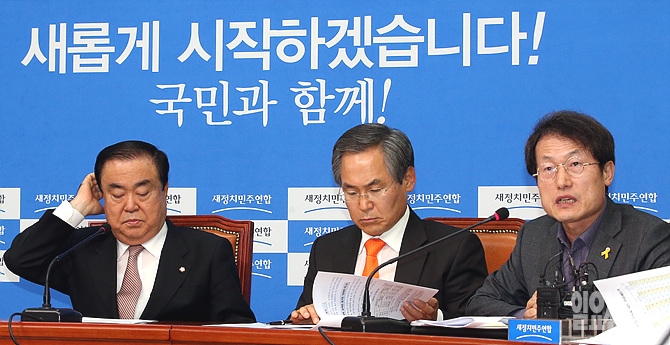 조희연 서울시교육감이 5일, 서울 여의도 국회 새정치민주연합 당대표 회의실에서 열린 전국 시도교육감협의회 회장단 간담회에서 발언하고 있다.