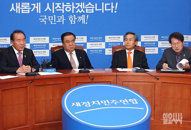 장휘국 광주시교육감(사진 왼쪽)이 5일, 서울 여의도 국회 새정치민주연합 당대표 회의실에서 열린 전국 시도교육감협의회 회장단 간담회에서 발언하고 있다.